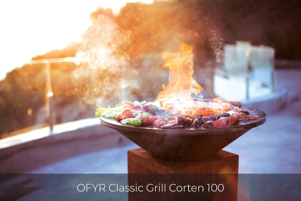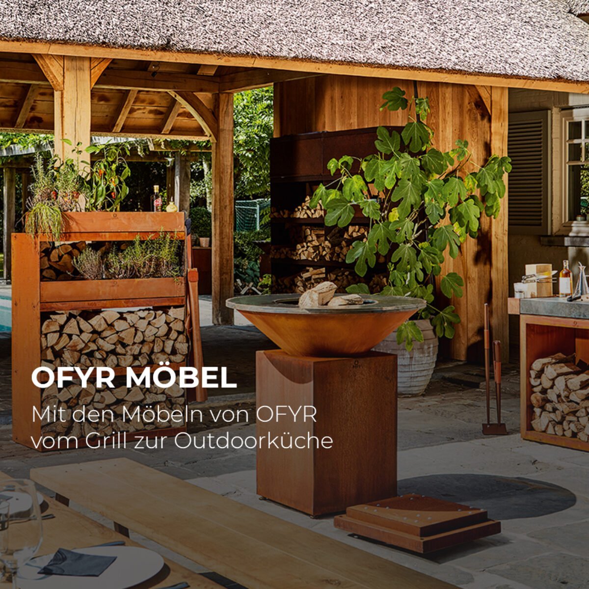 Eine wunderschöne, exklusive und vielseitige Art im Freien zu Kochen, Geselligkeit rund ums Feuer zu genießen und seine Gäste zu unterhalten. Dabei fügt sich der OFYR Herd mit seiner schlichten Form und der Modellvielfalt in nahezu jede Umgebung ein, von der grünen Wiese bis zur eleganten Loftterrasse.