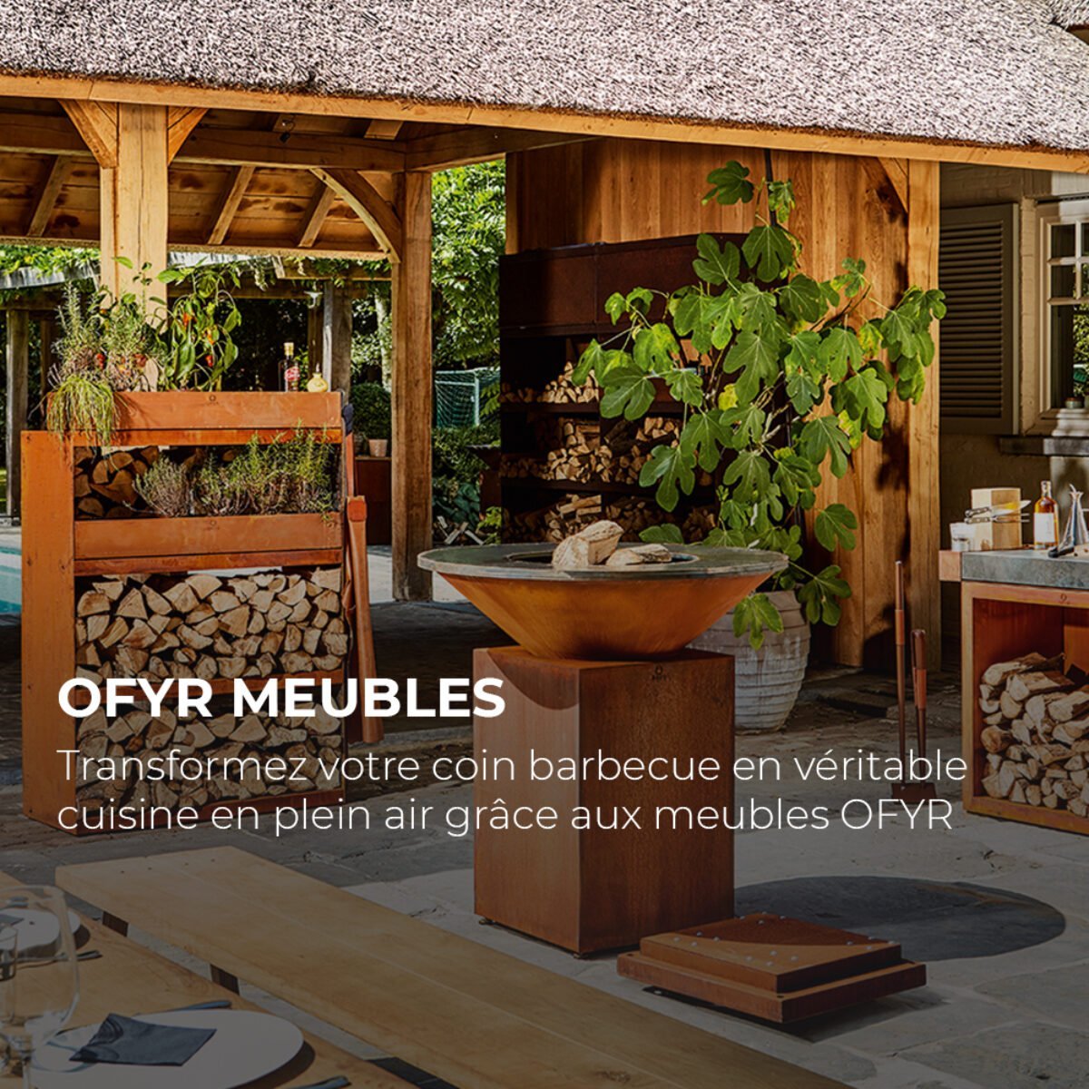 La cuisine en plein air dans ce qu’elle a de plus beau, de plus exclusif et de plus varié. L’assurance de moments de convivialité autour du feu et d’un art de cuisiner qui diverti les convives et invite au partage. Le barbecue OFYR, avec sa forme épurée et son large choix de modèles, s’intègre harmonieusement dans tout type d’environnement, de la bucolique prairie fleurie jusqu’à l’élégante terrasse de loft.