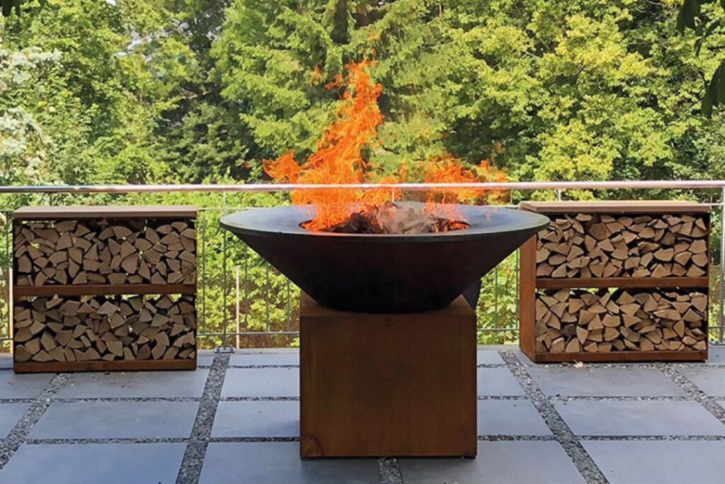 Perfekt für Gastronomen und Eventveranstalter wie für private Grillmaster! Die Feuerstelle XL Corten ist DAS Urmodell des schlichten puristischen OFYR Design- und Outdoor-Cooking-Konzepts – in XL.