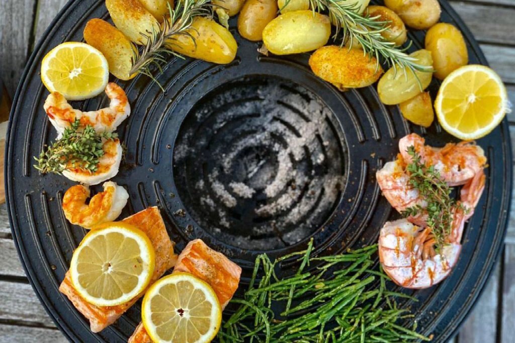 Kompakt, effizient und elegant: Der OFYR Tabl’O ist der ideale Tischgrill zum Zubereiten von gesunden und köstlichen Gerichten für 2-6 Personen. Der OFYR Tabl’O ist aus schwarz beschichtetem Stahl gefertigt und ruht auf einer hitzebeständigen Platte. Er wird mit einem Schnellstarter und einem praktischen Werkzeug zum Wenden der Kochplatte sowie zum Öffnen oder Schließen der Lüftungsöffnungen geliefert.
